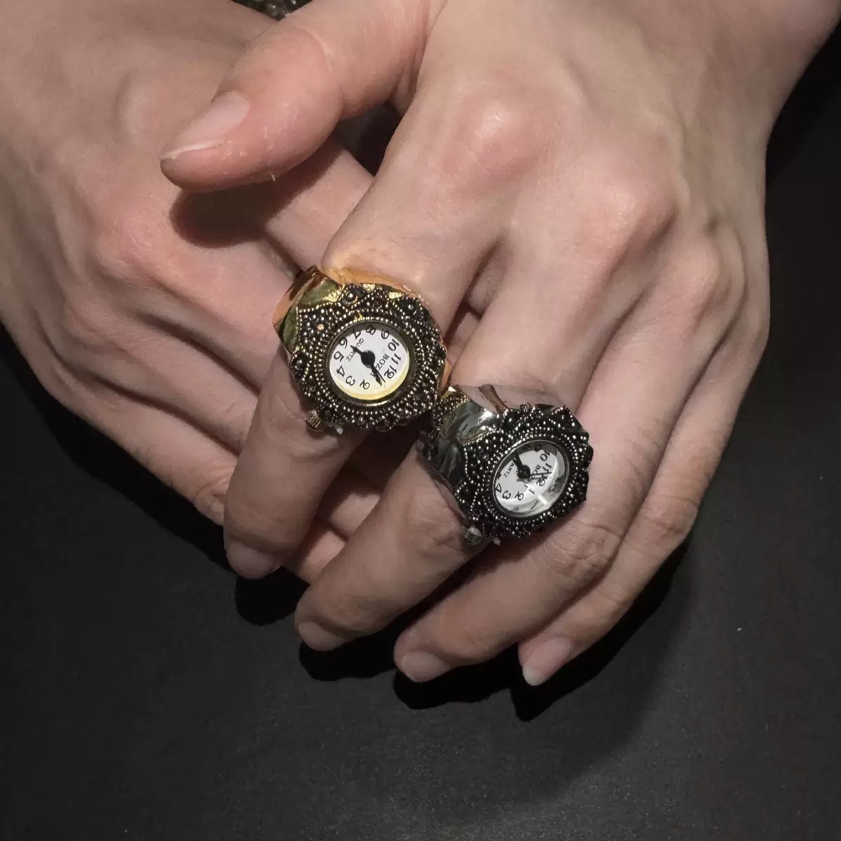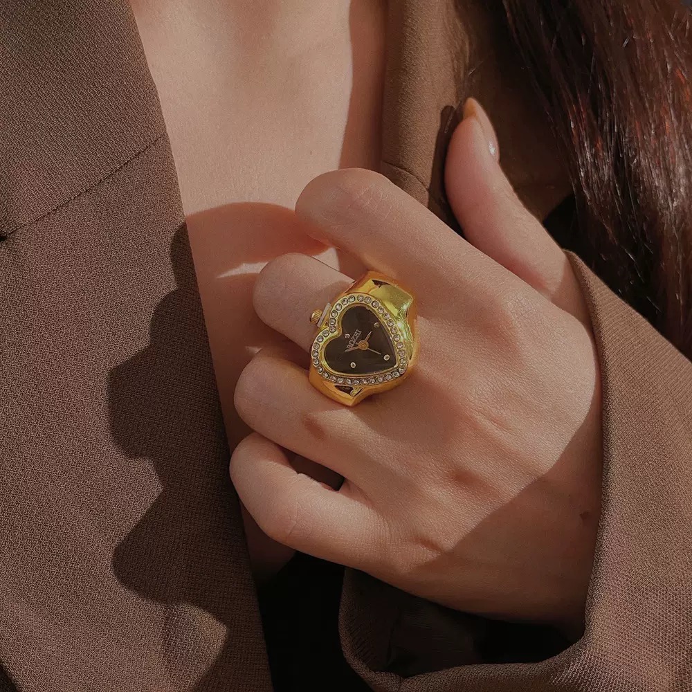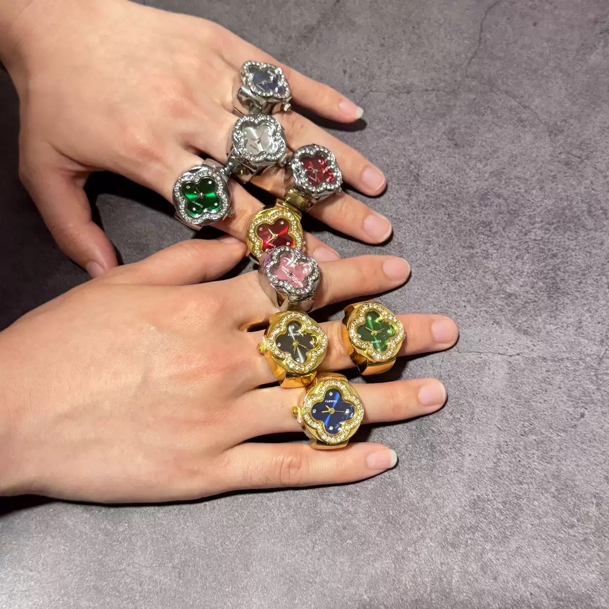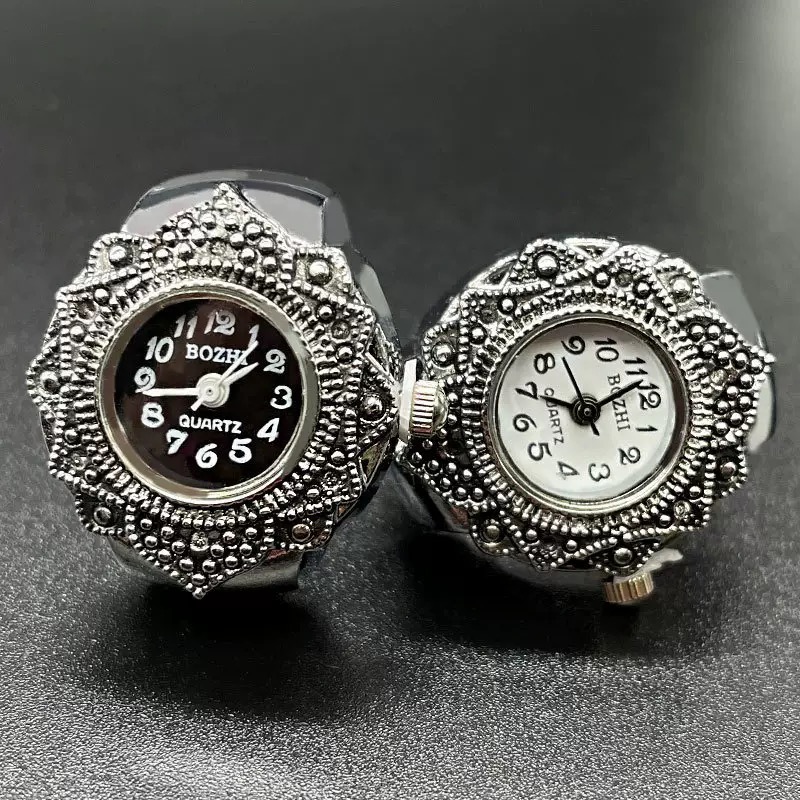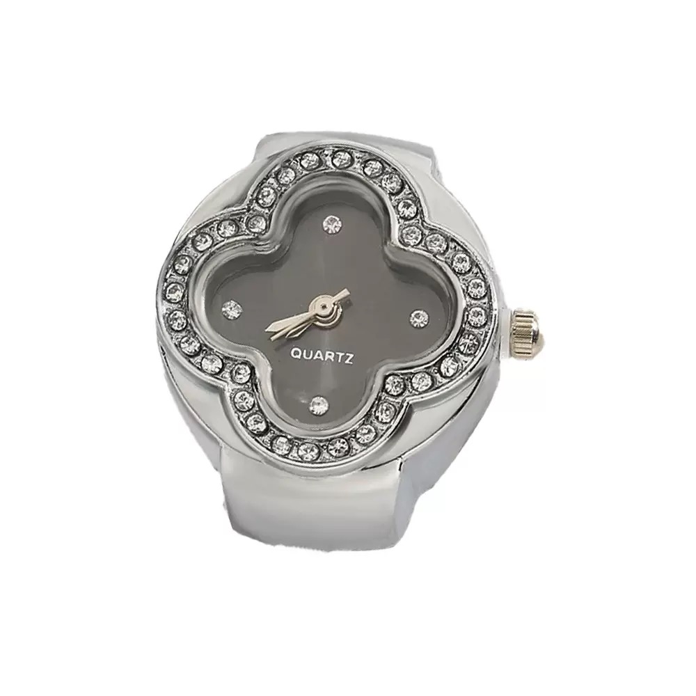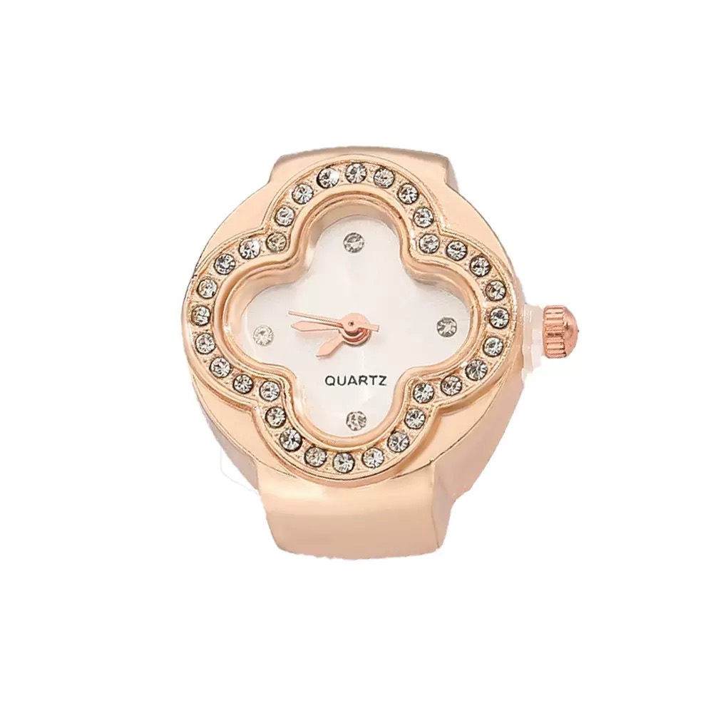 auto draftMini elastic quartz movement ring watch with floral numeral design, ladies’ ring watch