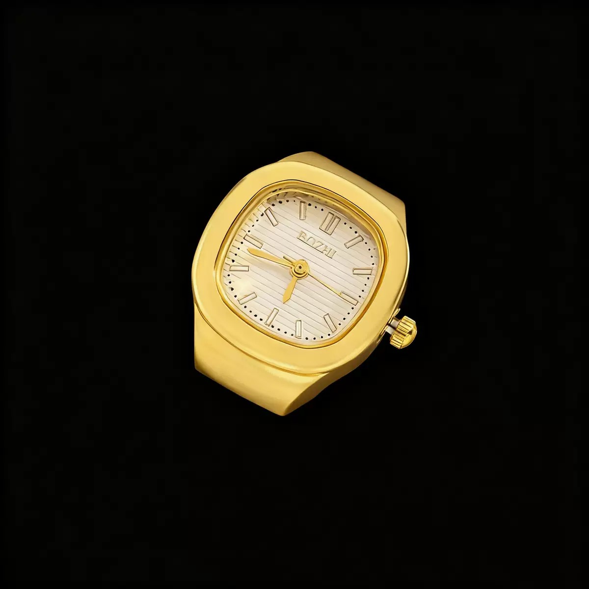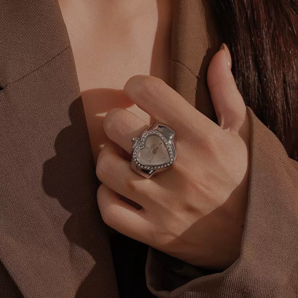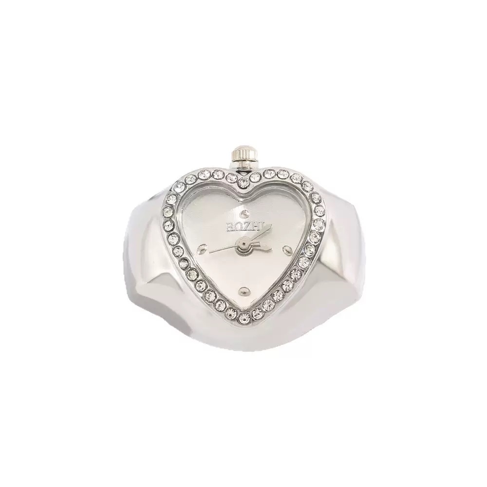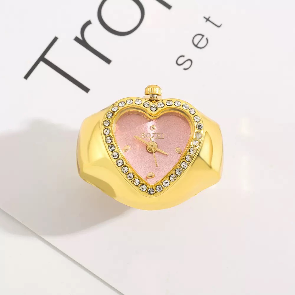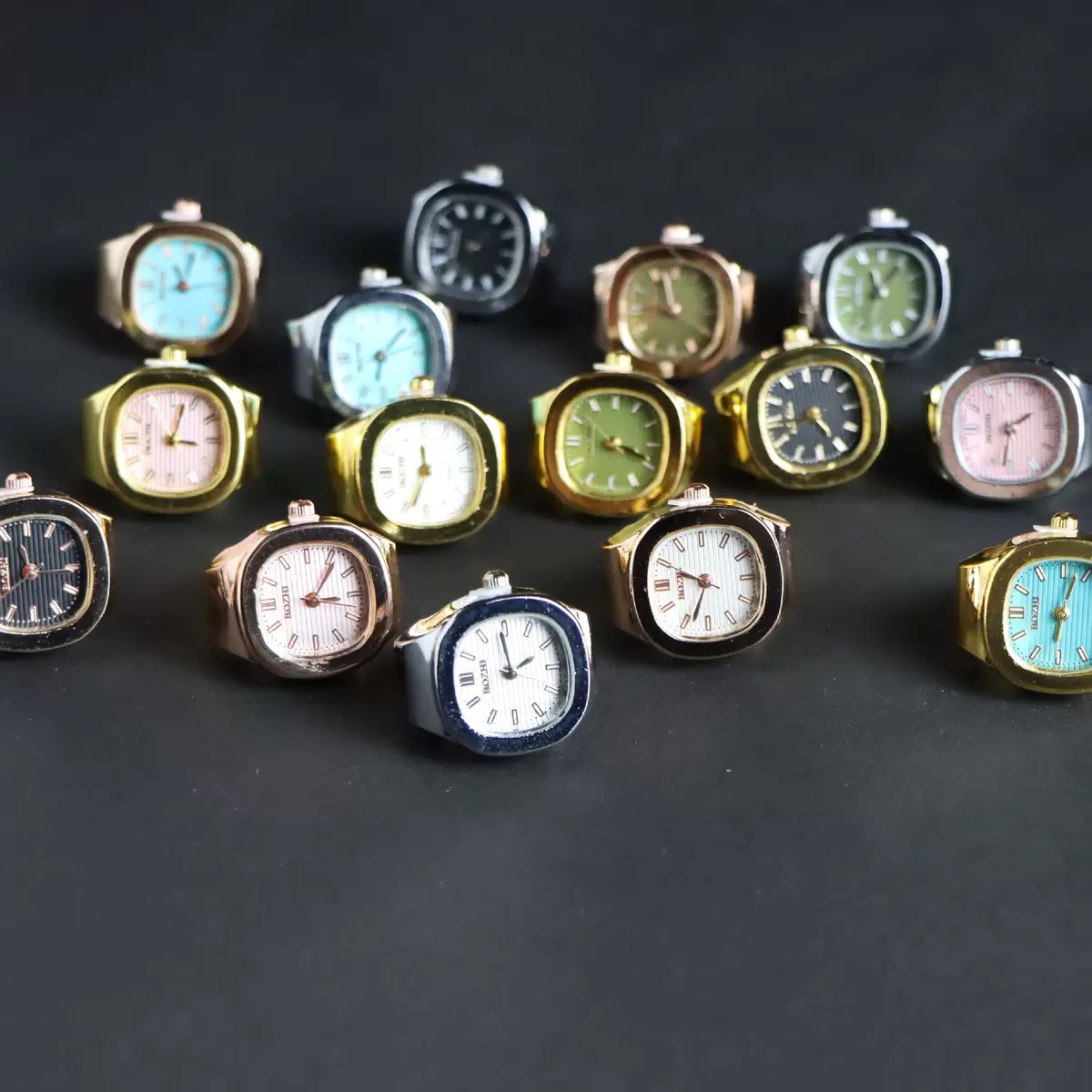 auto draftMini elastic quartz movement ring watch with floral numeral design, ladies’ ring watch